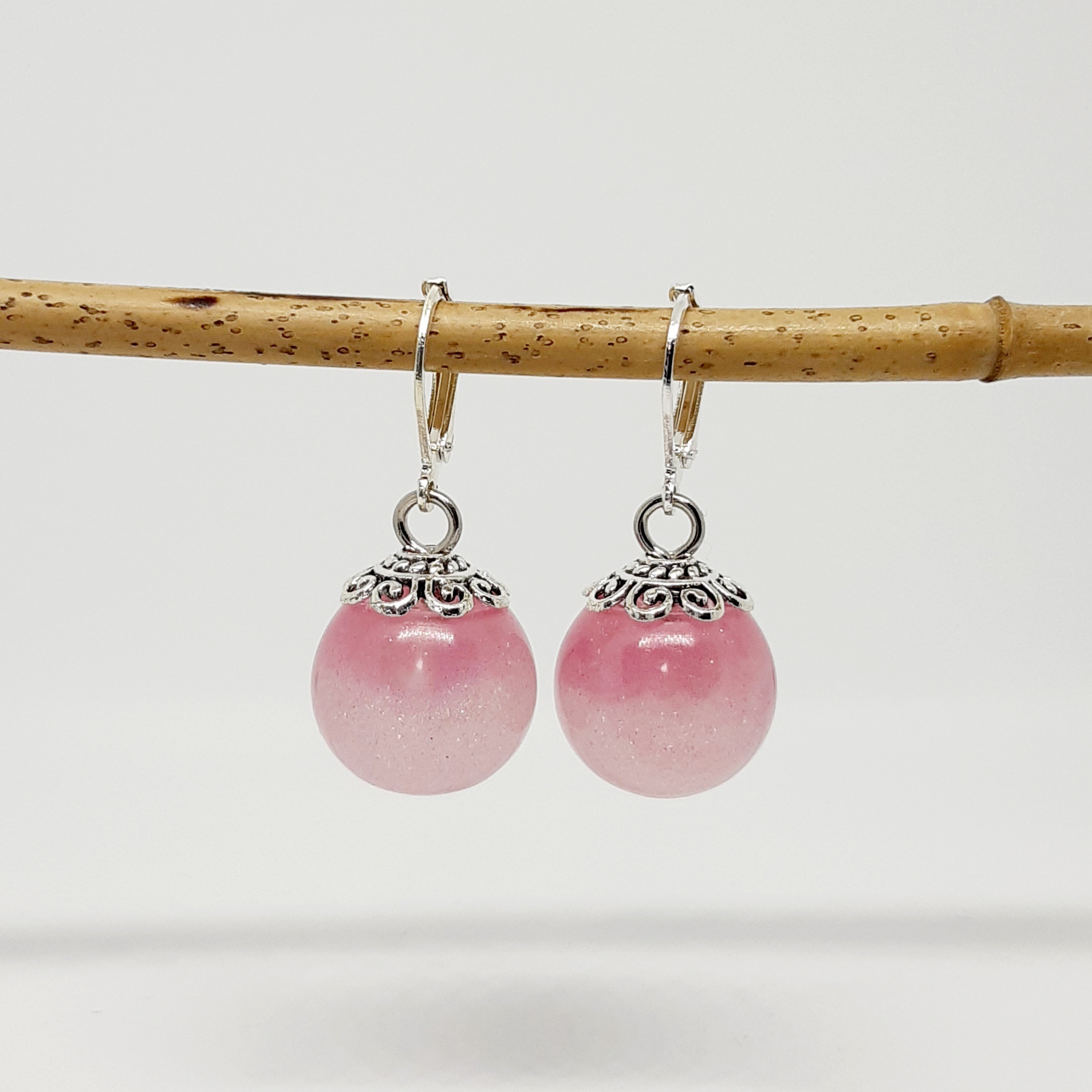 Die zweifarbigen Perlen der Ohrringe „Candygirl“ mit Klappbrisuren haben einen Durchmesser von circa 16 mm. Auf dem Kopf der „Candygirl“ glänzt jeweils eine silberfarbene Perlenkappe. Die filigranen, silbernen Klappbrisuren lassen die Ohrringe frei baumeln. Gleichzeitig funkeln, glitzern und glänzen diese handgemachten verspielten rosa-pinken Ohrringe.